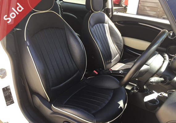 This stunning Cooper S comes with the following specification: 6 speed manual gearbox, electric windows, 17" alloy wheels, climate control, ABS, traction control, multiple airbags, Bluetooth phone preparation, privacy glass, rear park distance control, black roof and mirror shells, roof spoiler, radio/cd/aux, 2 keys, heated black leather seats with white piping. Full service history. All our cars are supplied with a new MOT & a three month parts & labour warranty. Part exchange & finance subject to status. We are a long established family run business.