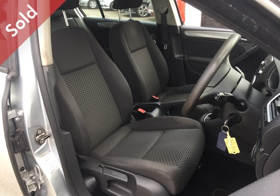 VW Golf TSI petrol S five door, metallic Silver, Black cloth, Air Con, Electric Windows, alloy wheels, ABS, traction control, multiple airbags, remote central locking, 2 keys, electric heated mirrors, Radio, CD, 2 owners, full service history. All our vehicles are supplied with a new MOT & a three month warranty. Part exchange & competitive finance available subject to status. We are a long established family run business.